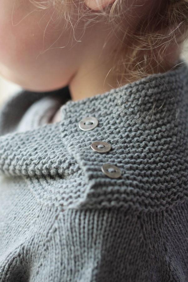 Me voici de retour avec une pièce de tricot terminée la semaine dernière, il manquait juste le temps de placer les brandebourgs sur le gilet. Celui-là remplacera celui-ci qui maintenant n’habillerait même plus la mini …